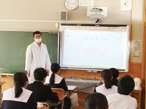 2021年12月8日6時間目(14:30~15:20)に北方町立北方中学校の2年生の1~5組でもとす薬剤師会の学校薬剤師5名が、薬物乱用防止講座を行いました。
