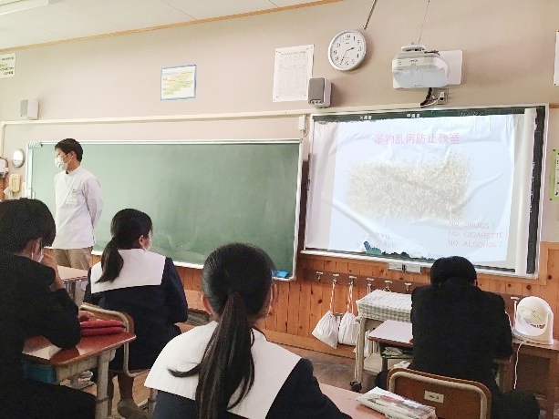 • 北方地区の5人の薬剤師が各クラスで、同時刻に薬物乱用防止講座を開催(北方中学校にて 12月8日)
